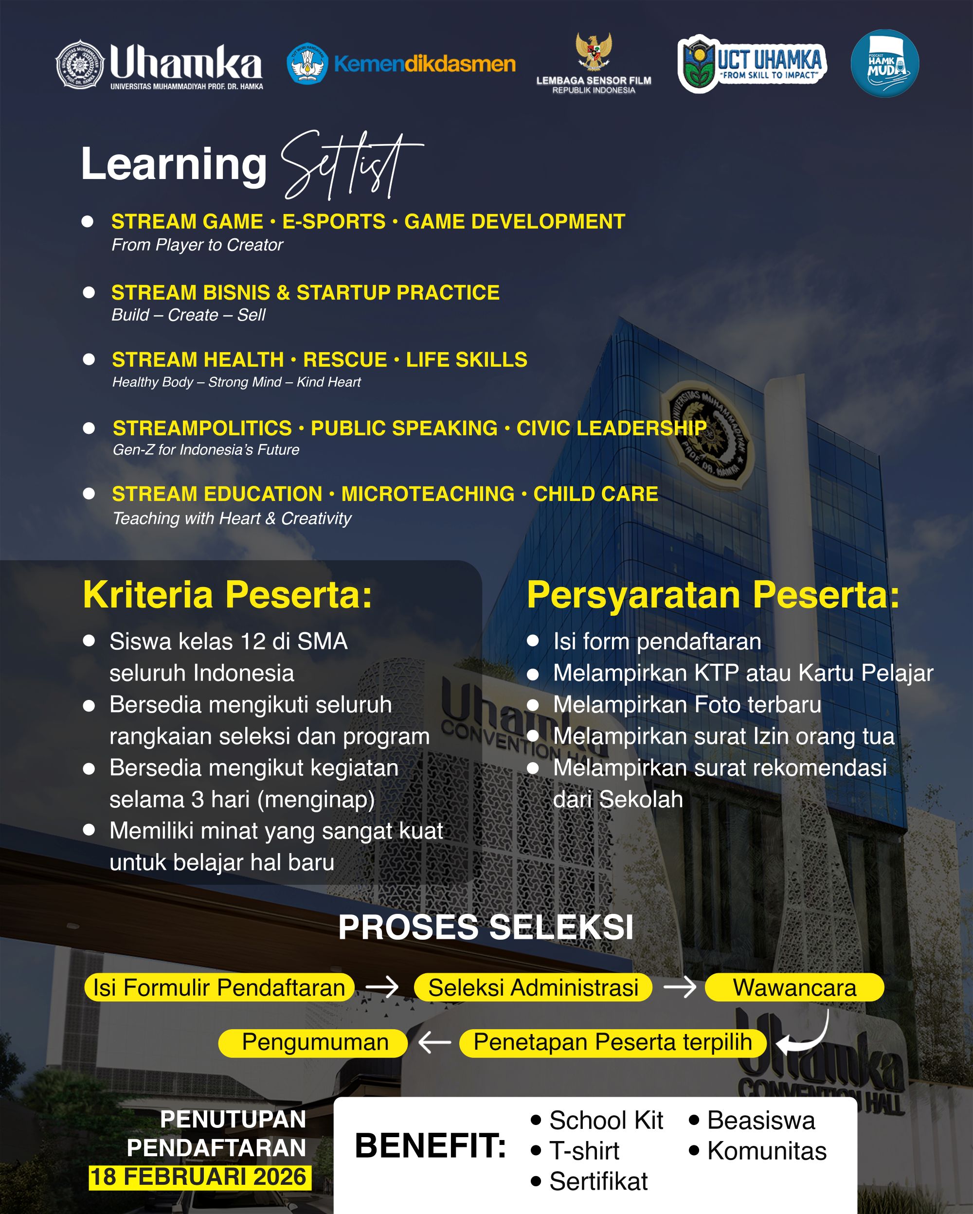 Tak hanya itu, Ramadan Youth Camp Uhamka juga menghadirkan Learning Setlist yang terbagi ke dalam beberapa stream pengem-